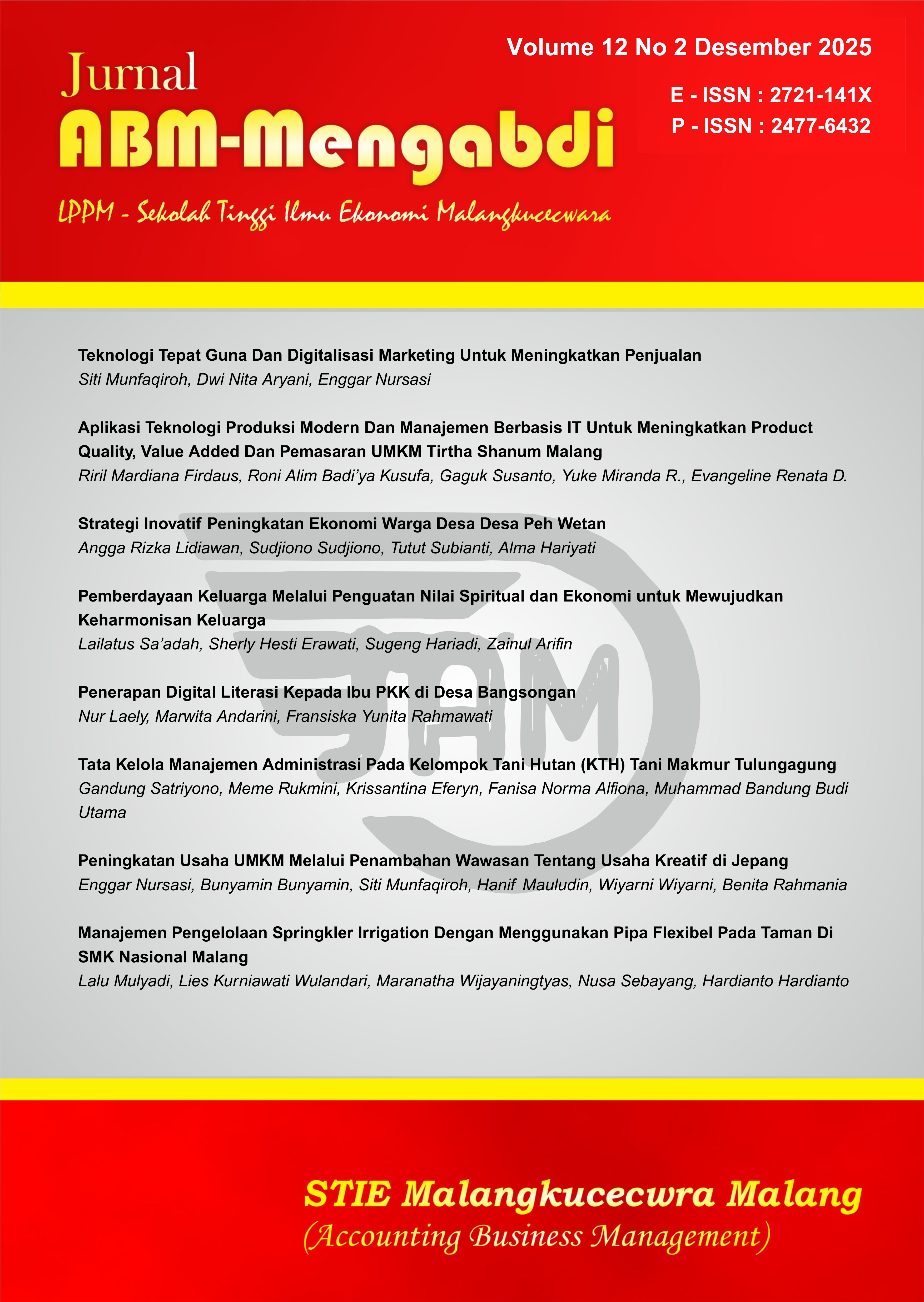 JAM: Jurnal ABM Mengabdi Sekolah Tinggi Ilmu Ekonomi Malangkucecwara Malang sebagai bagian dari penyebarluasan hasil pengabdian kepada masyarakat. Situs JAM: Jurnal ABM Mengabdi Sekolah Tinggi Ilmu Ekonomi Malangkucecwara Malang menyediakan artikel jurnal yang dapat diunduh secara gratis. Jurnal ini merupakan jurnal ilmiah nasional yang menjadi sumber rujukan para akademisi di bidang pengabdian kepada masyarakat.